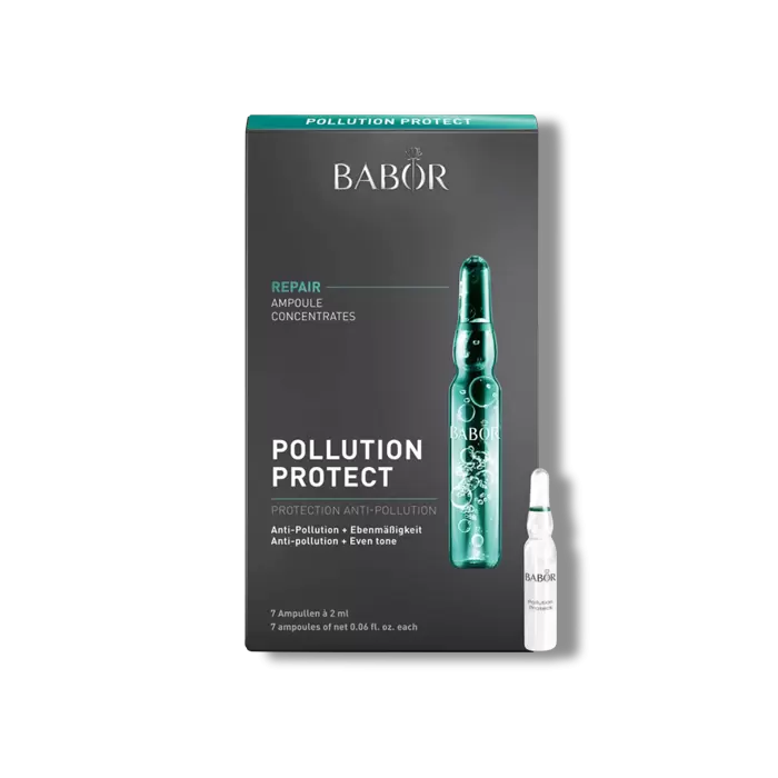 Babor’s Ampoule Concentrates Pollution Protect features a 7-day treatment containing highly concentrated, high-tech ingredients sealed in glass vials to help address a multitude of environmental stressors such as smoke, smog, UV radiation, and harmful blue light emitted from our phones and computer screens. This powerful, anti-pollution treatment helps shield skin from these factors while helping to activate the skin’s own protective mechanisms.
