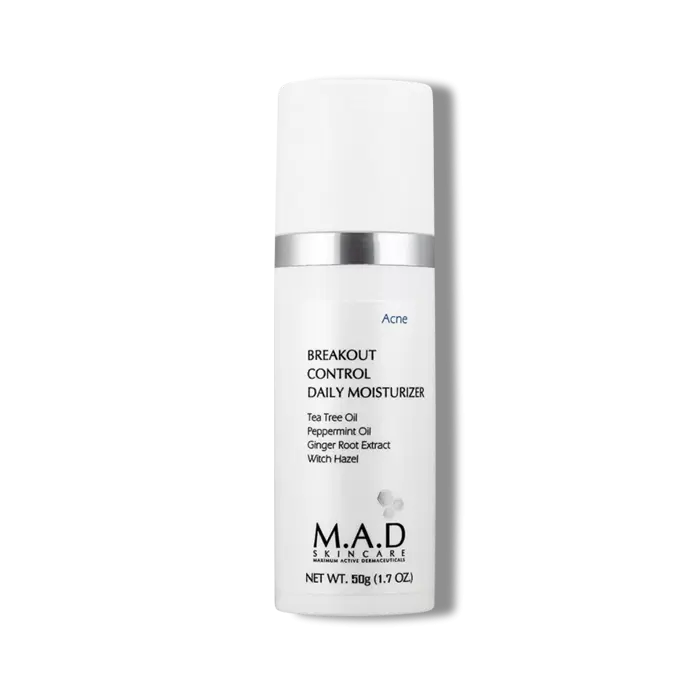 A lightweight, daily moisturizer tames oil production and calms irritated skin. Breakout Control Daily Moisturizer helps skin look and feel great as botanicals, such as Chamomile and Ginger Root, control sebum production and gentle moisturization keeps skin from feeling dry and irritated.