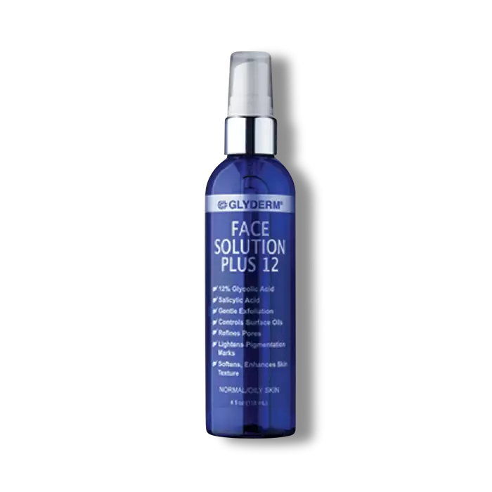 GlyDerm Face Solution Plus 12 encourages cell turnover with glycolic acid to reduce the appearance of the signs of aging. It leaves skin looking clearer and smoother with non-greasy moisture.