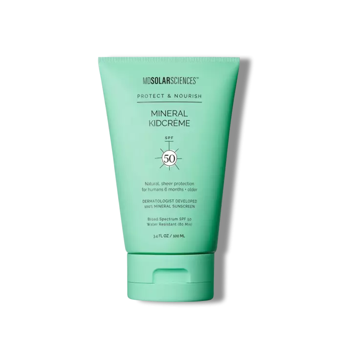 This gentle, emollient unscented and water-resistant crème is perfect for children’s delicate skin and provides powerful broad spectrum protection. Mineral KidCrème is creamy, easy-to-apply and goes on silky smooth. Finally, a mineral sunscreen perfect for little ones (and the whole family!) that is quick to apply and feels great. The mineral formula won’t run into or sting eyes, even when swimming or sweating, which means more smiles and longer days at the beach. No more squirming or running away from the sunscreen tube. Simply shake, slather, and go!