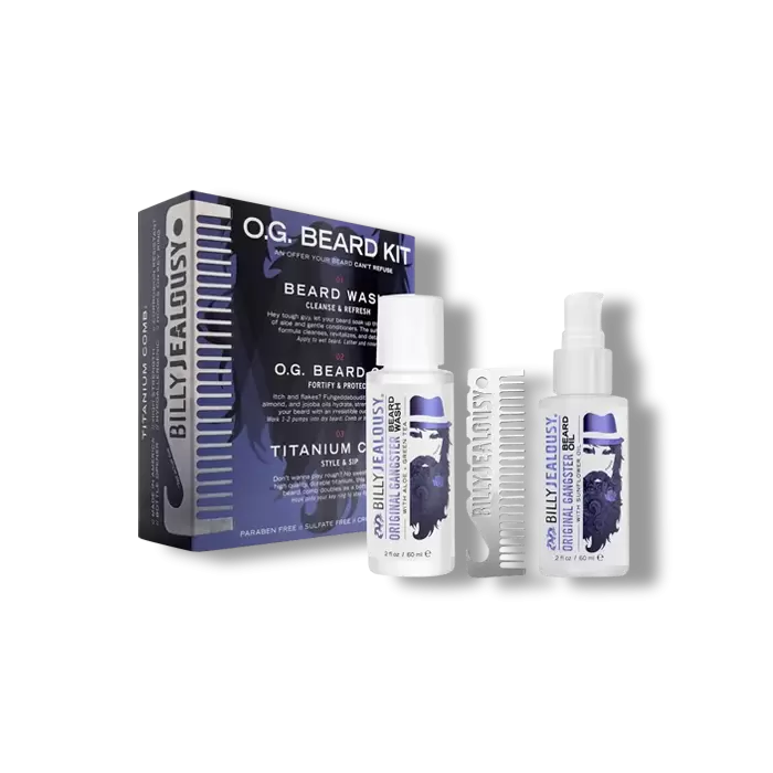 Billy Jealousy Original Gangster Beard Kit contains three amazing products to keep your beard in the best shape. The Hydrating Beard Wash will keep your beard clean and healthy. The Beard Oil will nourish and hydrate your beard without making it greasy.