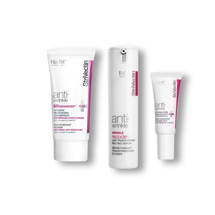 This high-performance trio is supercharged by NIA-114 to target signs of aging on the eyes, face and body for healthy, younger-looking skin. Strivectin’s #1 anti-wrinkle moisturizer** now targets 10 types of skin-boosting collagen to minimize the appearance of wrinkles and stretch marks. For the delicate skin around the eyes, they upgraded their best-selling, wrinkle-smoothing eye cream to start seeing younger-looking eyes in just 5 days*. Even deep, stubborn wrinkles don’t stand a chance with our high-tech melting serum formulated to transform skin fast.