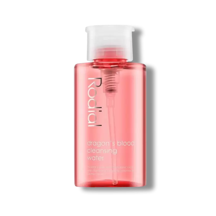 A micellar water with hyaluronic acid and vitamin b3 to gently cleanse and soothe the skin. Dragon’s Blood Cleansing Water is a gentle, hydrating micellar water for the eyes and face, packaged in our new on-the-go bottle. Formulated with refreshing rose water and droplets of micellar oil, the formula gently removes make-up and impurities whilst dragon’s blood comforts skin through hydration. Vitamin b3 illuminates for an instant burst of energy and a brighter complexion. Hyaluronic acid locks in moisture and plumps up fine lines. This non-sting, no rinse formula is perfect for a fast paced, jet set lifestyle.