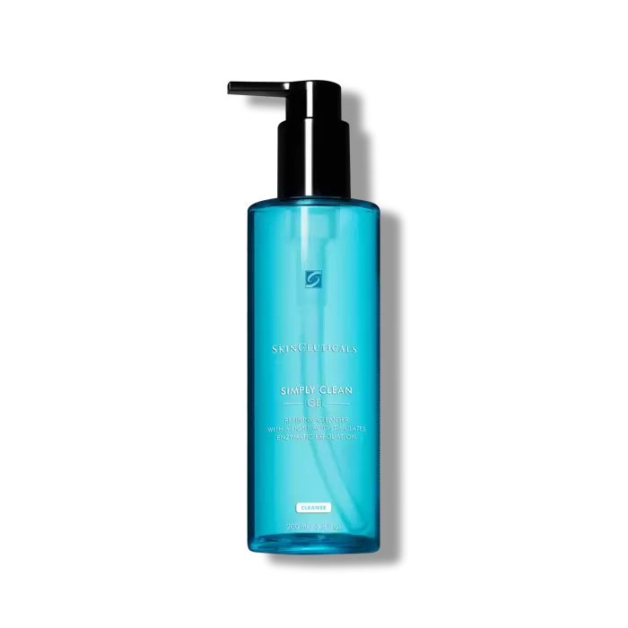 Simply Clean is a powerful makeup removing cleanser formulated with an amino acid surfactant system and a 6% concentration combining sulfonic acid (HEPES), glycerin, chamomile and aloe extracts, orange oil, and citric acid to gently exfoliate uneven or rough skin. This unique gel cleanser efficiently removes waterproof makeup and excess oil to leave skin feeling clean and primed for in-office treatments and at-home cosmeceutical use. Tested pre-procedure.
