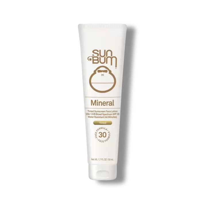 Sun Bum Mineral Tinted Sunscreen Face Lotion UVA/UVB Broad Spectrum SPF 30 is a lightweight, silky formula that glides on easily to deliver chemical free sunscreen and primer effects with a matte finish