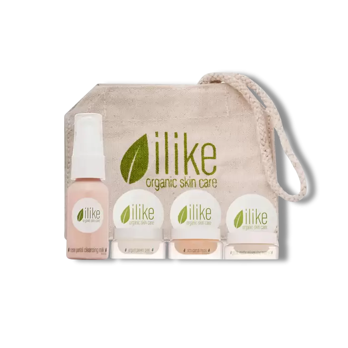 Ilike Organic Skin Care Time Reverse Regime cleanses, moisturizes and refines the skin to improve tone and texture. Each product is formulated to leave the skin feeling calm and refreshed while excess oils are absorbed. The skin is left brighter and rejuvenated. Perfect for travel use.