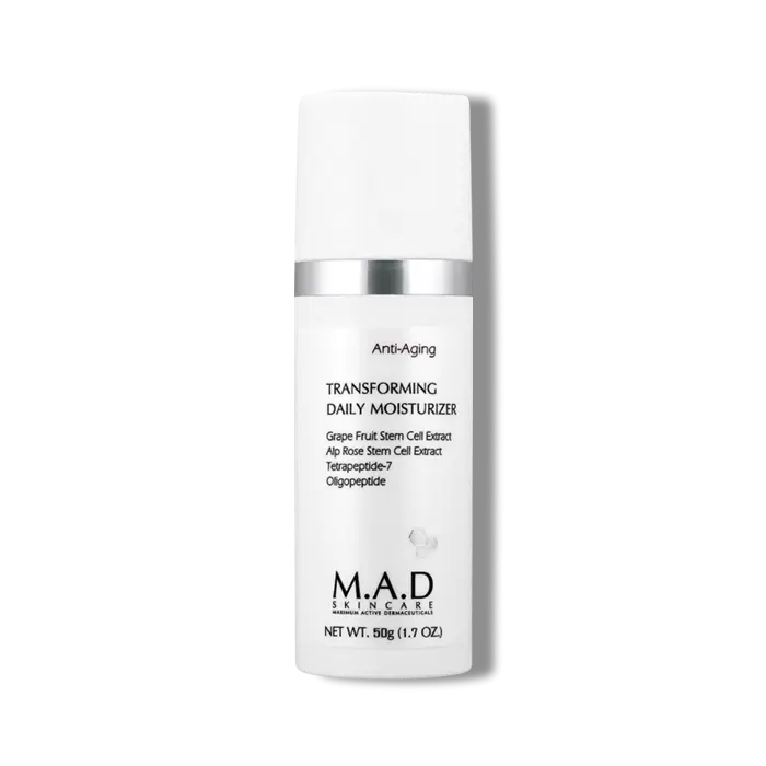A lightweight multi-stem cell, multi-peptide infused complex, designed to make you look your best and return a more refreshed, healthy look to the appearance of your skin. Transforming Daily Moisturizer formulated properly balanced peptides and plant stem cell extracts that work to minimize the appearance of fine lines and wrinkles and maintain healthy skin at the cellular level for long lasting results.